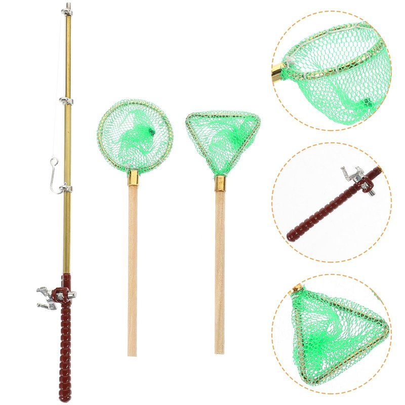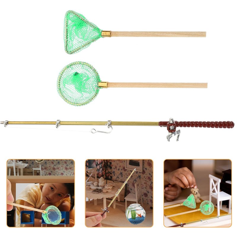 - Miniature Fishing Rod - This miniature fishing pole and fishing nets models set is house accessories, easy to place and versatile