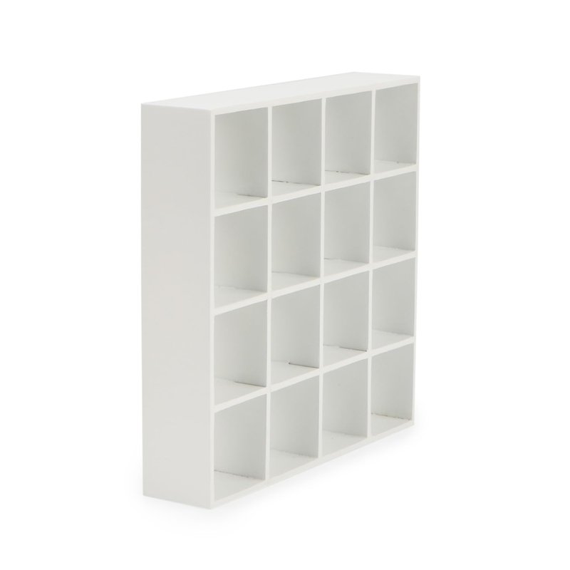 Miniature Furniture Wooden Storage Rack 16 Grid Shelves 1:12 Dollhouse Accessories Bookshelf Display Shelf Wall Rack Stand Mini House Scene Decoration (White)