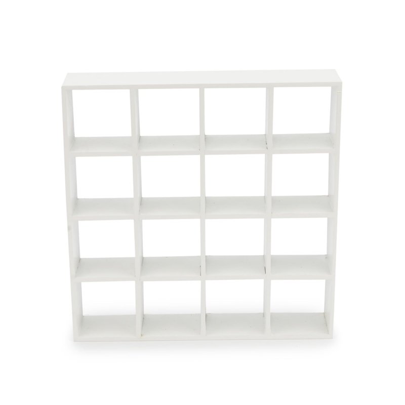 - With 16 grid, this shelf provides ample display and shelving space. Vertical placement can be used as a storage shelf, or you can try to add a wooden board to stick on the back by yourself, horizontal placement can be used as a base display shelf.
