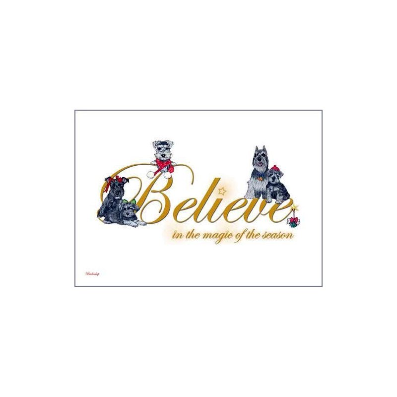 Celebrate the joy with friends and family with these caring and adorable Schnauzer Christmas Cards Believe. Each Holiday Card has the inside saying "May the magic of believing be this years gift to you."
