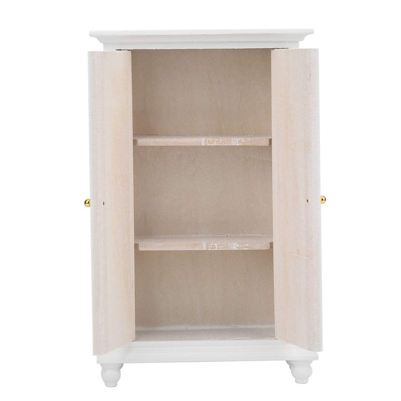 Miniature White Wooden Wardrobe Mini Dollhouse Accessories Miniature Furniture Doll Furniture Closet Tiny Furniture Clothes Wardrobe for Dollhouse