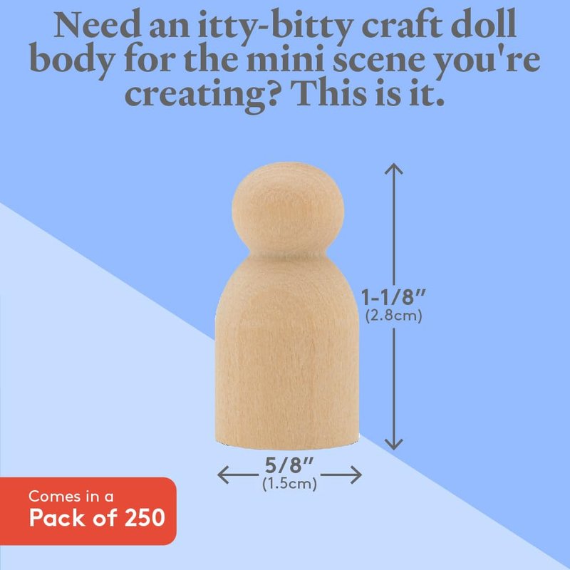 Miniature Wooden Peg Dolls 1-1/8 inch, Pack of 250 Small Peg Dolls for Crafting, Miniature Figures, and Small World Play