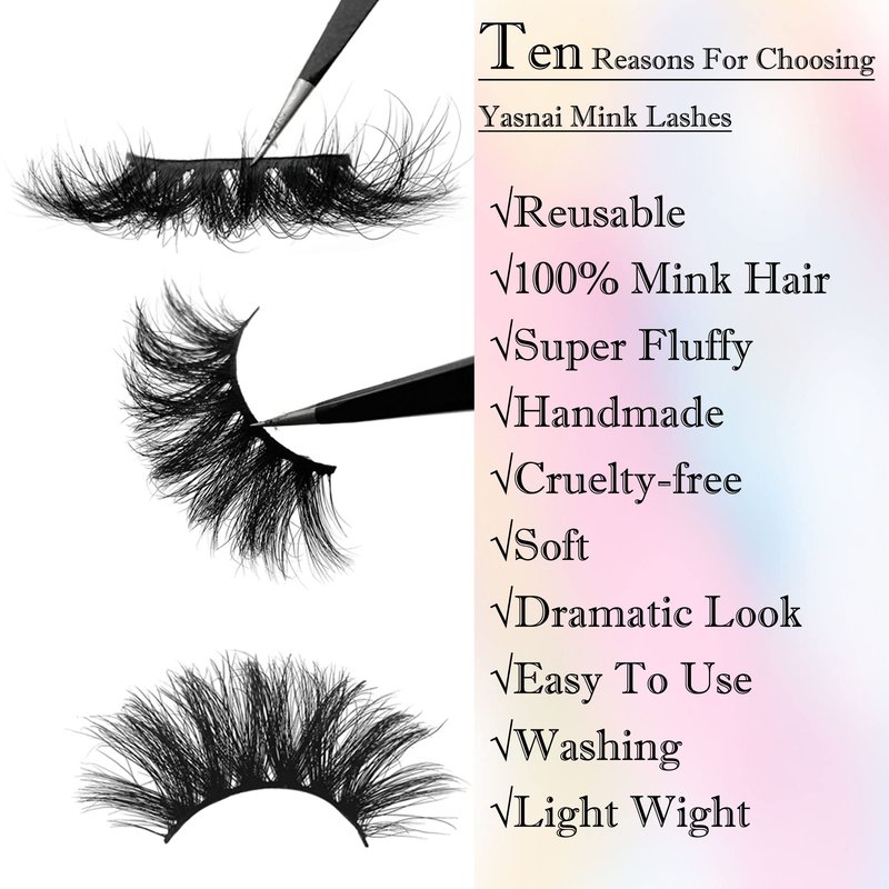 Mink Lashes Bulk 22mm Lashes Fluffy Yasnai Eyelashes, Real Mink Lashes 6 Pairs Pack Wispy Long 9D EyeLashes Wholesale