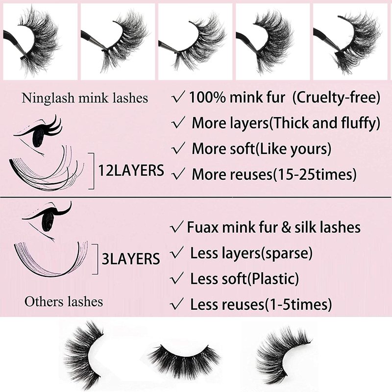 Mink Lashes Bulk Ninglash 10 Pack False Eyelashes, 14-18MM Real Mink EyeLashes, Thick HandMade Full Strip Lashes, Crueltyl Free Fluffy Lash, 5D Mink Lashes Wholesale