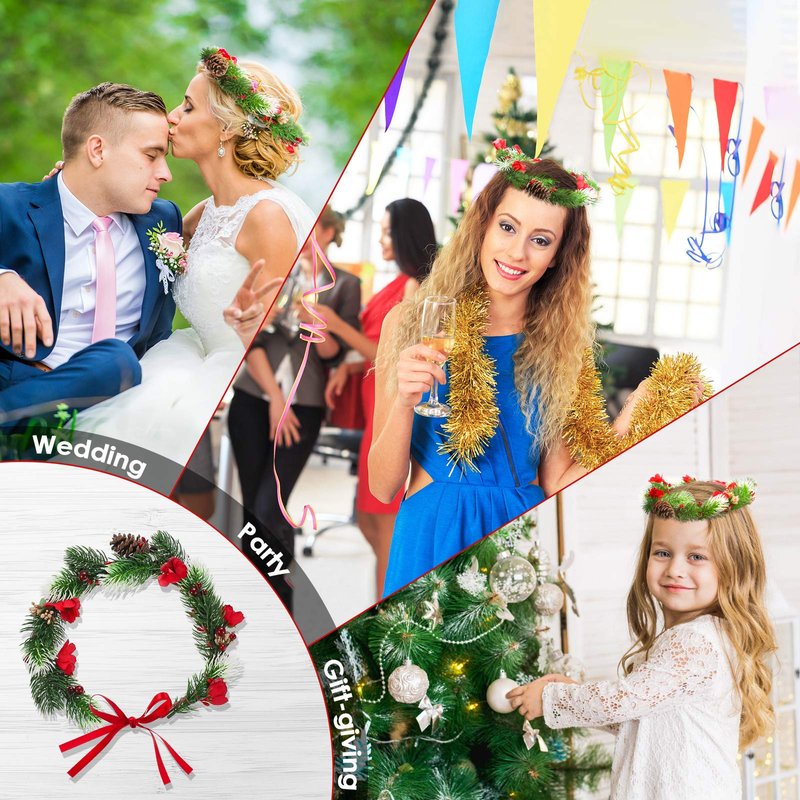 - 🎄🎄Rich elements: These Christmas wreaths come with rich elements, including green plants, red fruits, pine cones, red ribbons, etc. These elements make this headband more exquisite.
