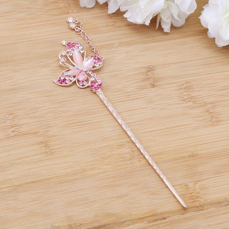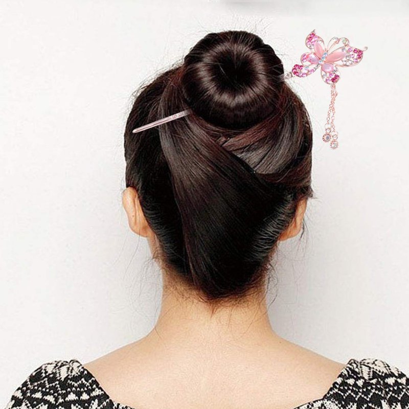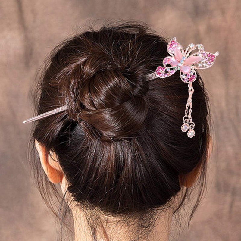 Minkissy Rhinestone Chinese Hair Stick Retro Butterfly Hair Chopsticks with Tassel Pendant Hairpin Chignon Pin for Women Girls