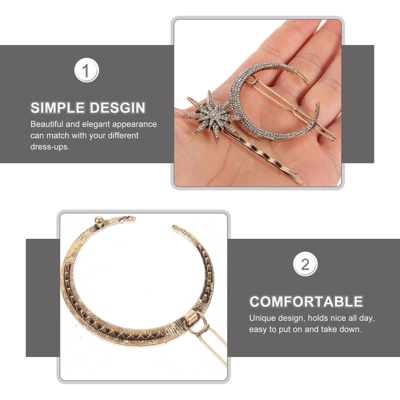 - Rhinestone star hairpin: 【easy to use】just push the star hair clips gently into the hair or braid, the loose hair will be fixed, or you can fix it in the right place to decorate your hairstyle, the cute moon hair accessories make your hairstyle more beautiful.