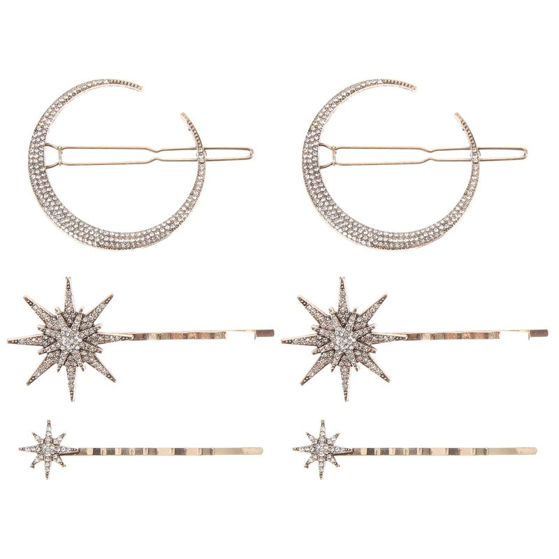 Crystal Moon Star Hair Clips for Women Girls Hair Barrettes Hair Pin Side Clip Star Vintage Hair Accessories Decorative Moon Headpieces Jewelry 6Pcs Set-Gold.