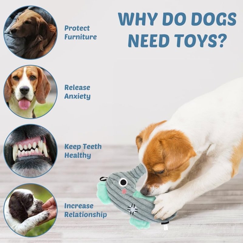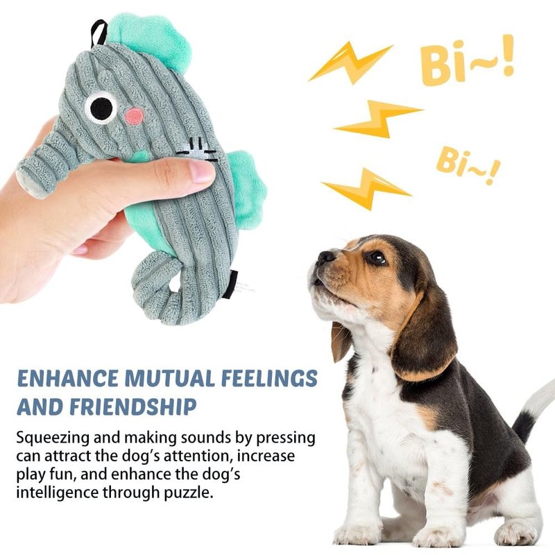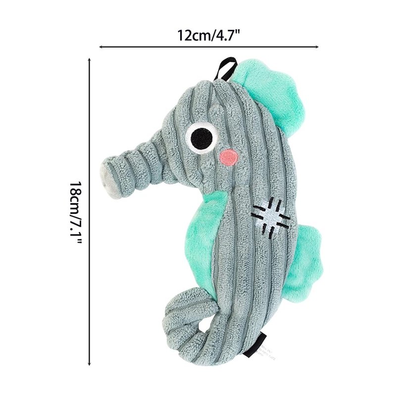 - Novel Appearance Design:Ocean series dog plush toys, available in shark, crab, seahorse, squid, and different color shapes for dog toys to choose from.