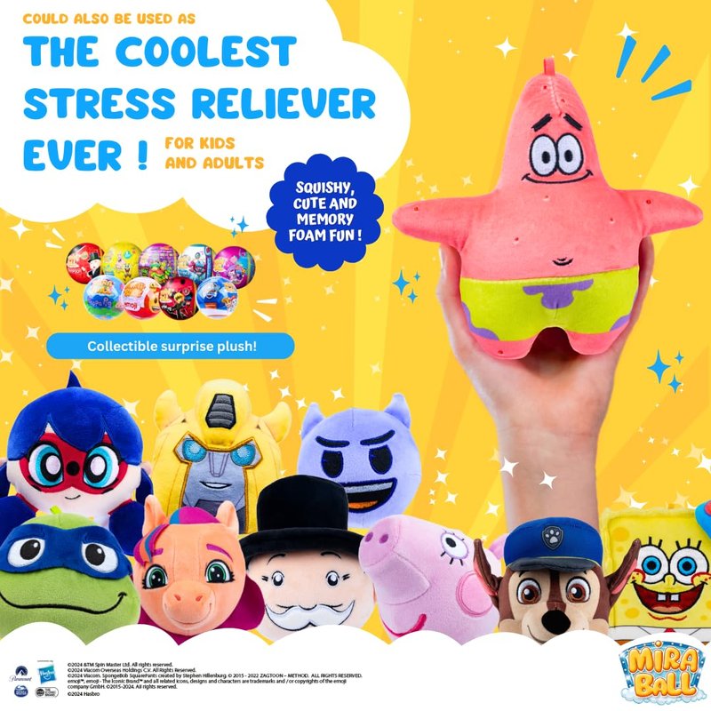- Limited Edition Collection: Unbox your MiraBall to reveal a surprising maxi plush featuring adorable SpongeBob characters like Patrick Star, Squidward Tentacles, Mr.Crabs, and many more!