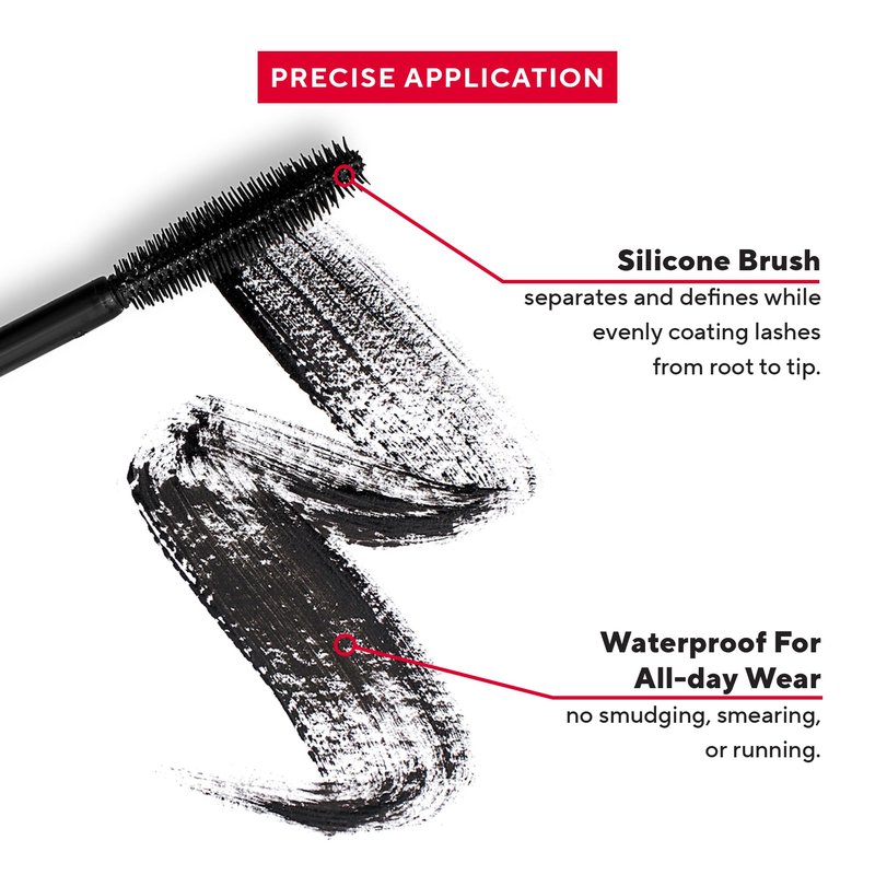 - BOLD BRUSH - Our waterproof lash mascara features a specially crafted silicone brush that allows for precise application to separate and define while evenly coating lashes with lasting color from root to tip.