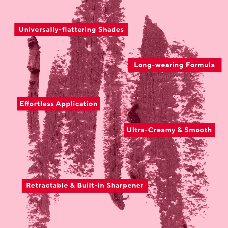 - THOUGHTFUL DESIGN - Our retractable long-lasting lip liner twists up and back and features a built-in sharpener in the base for effortless on the go use. No need to tote around a messy pencil sharpener.