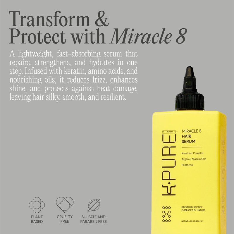 Miracle 8 Keratin Hair Serum by K-Pure, Instant Deep Conditioning Treatment, Sulfate & Paraben Free, Keratin & Argan Oil Growth Formula for Repairing Dry, Damaged Hair, Frizz Control, & Lasting Shine