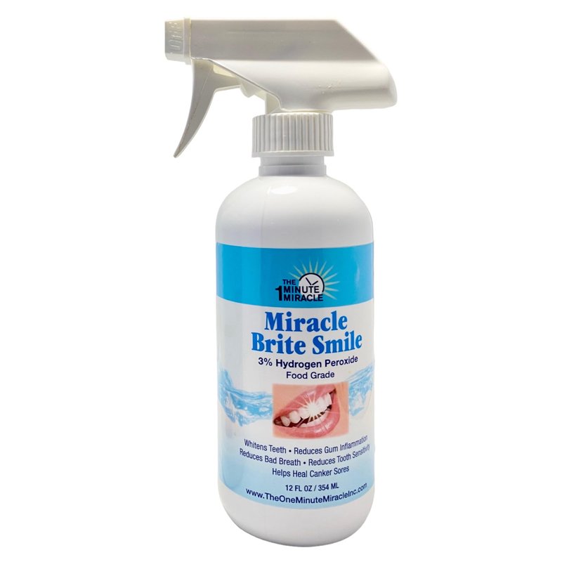 - Contains 1 - 12 fluid ounce bottle of Miracle Brite Smile Rinse - 3% Hydrogen Peroxide Food Grade, Peppermint, Lemon, Clove Leaf, Cinnamon, Rosemary.