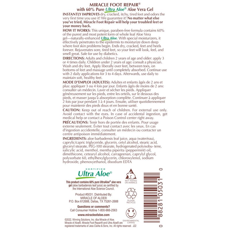 - 60% PURE ULTRA ALOE FORMULA - Our Miracle Foot Repair Cream's 60% ultra aloe concentration enhances softening, even on the toughest calloused areas.