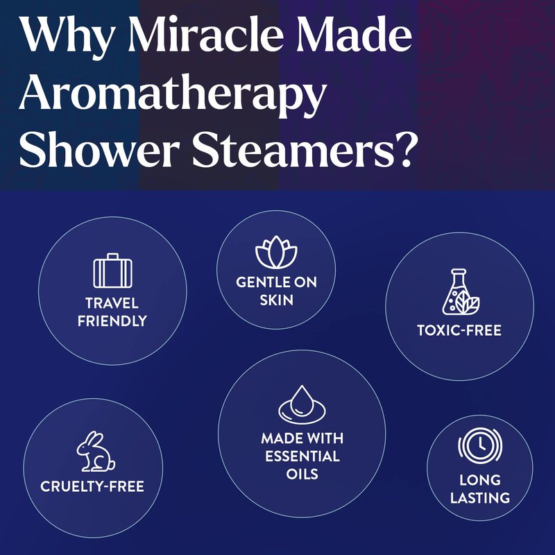 - Spa Essentials for Women - Wash away the stress and fatigue with Miracle Made aromatherapy shower bombs. Sweeten your shower experience with these pure essential oils to revitalize and relax from a long day.