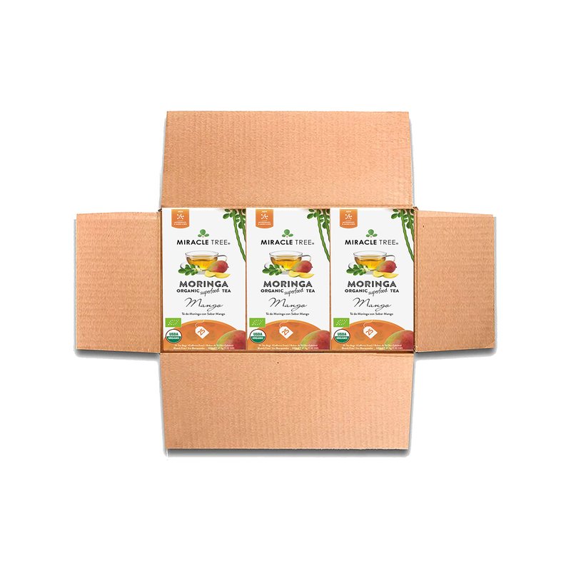 Miracle Tree - 3 Count of Organic Moringa Superfood Tea, 25 Individually Sealed Tea Bags, Mango (Keto, Detox, Energy/Immunity Booster, Vegan, Gluten-Free, Organic, Non-GMO, Caffeine-Free)