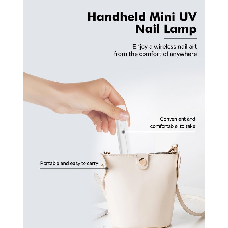 - 【Lightweight and Portable Nail Light】:This UV nail lamp is small and light, with a minimalist design of 4.29*0.67*0.67 inches. It can be carried anywhere, whether you are on a business trip or traveling. You can easily put it in your handbags, pockets and backpacks without any pressure, and enjoy manicure anytime, anywhere.