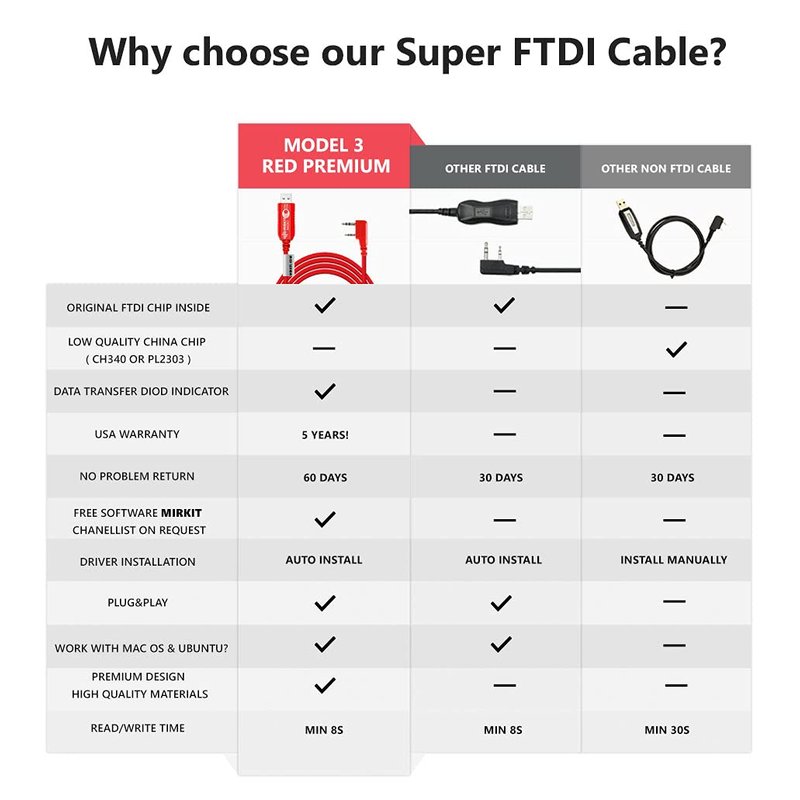 - ✔️Exclusive red design programming cable for Baofeng and Pofung ham walkie talkies with original FTDI Chip inside!