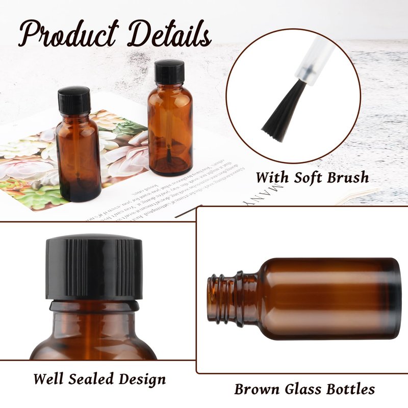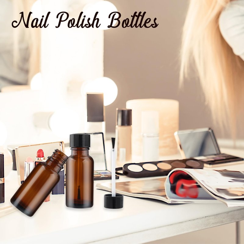 - Brown bottle with black cap. These nail polish bottles are suitable for most nail polish. The empty bottles come with brush cap, easy to use and carry.