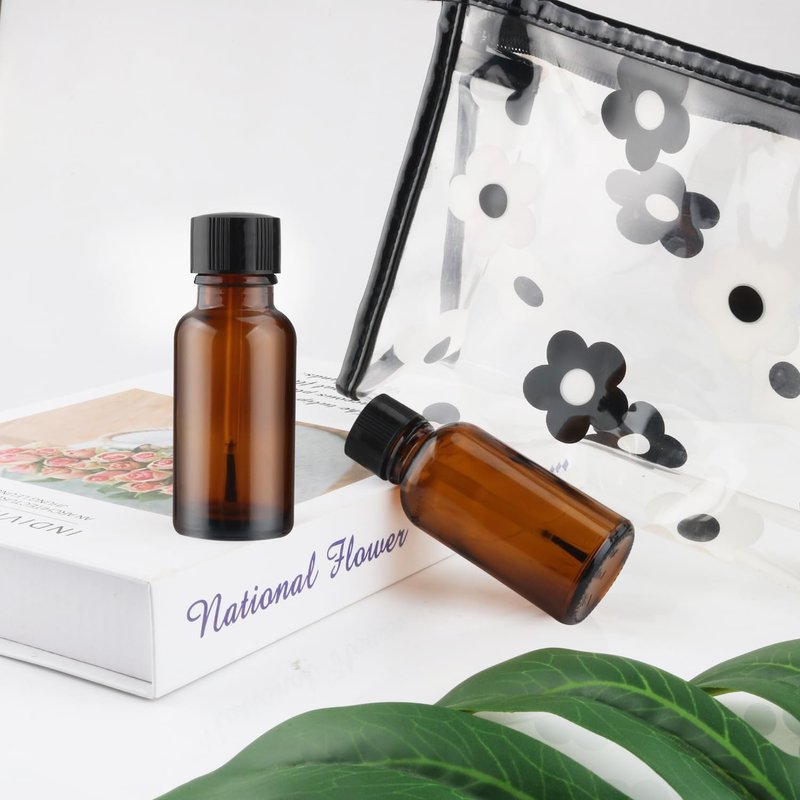 Brown glass brush bottle, black bottle cap, with brush and lid, stylish and practical.