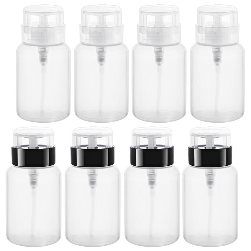 Mirrline 8 Pcs 200ml/6.8oz Push Down Pump Dispenser Plastic Lockable Pump Dispenser Bottle Pumping Empty Bottles with Flip Top Cap for Nail Polish Makeup Remover