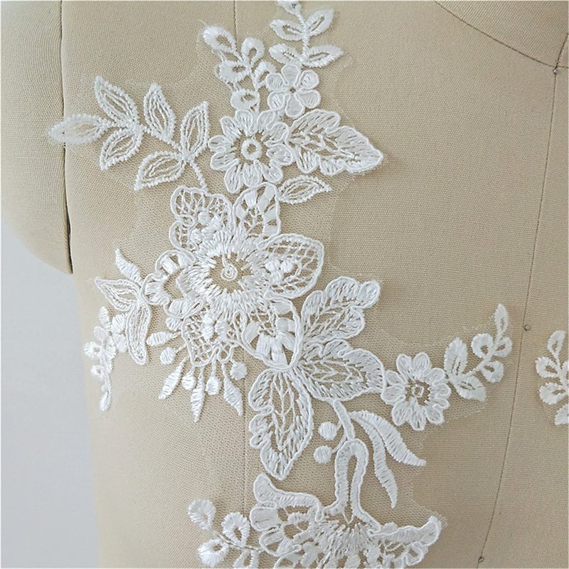 Mirror Pair Corded Lace Applique Embroidery Flower Leaf Ivory Lace Motif Wedding Dress DIY Accessories Lace Decoration