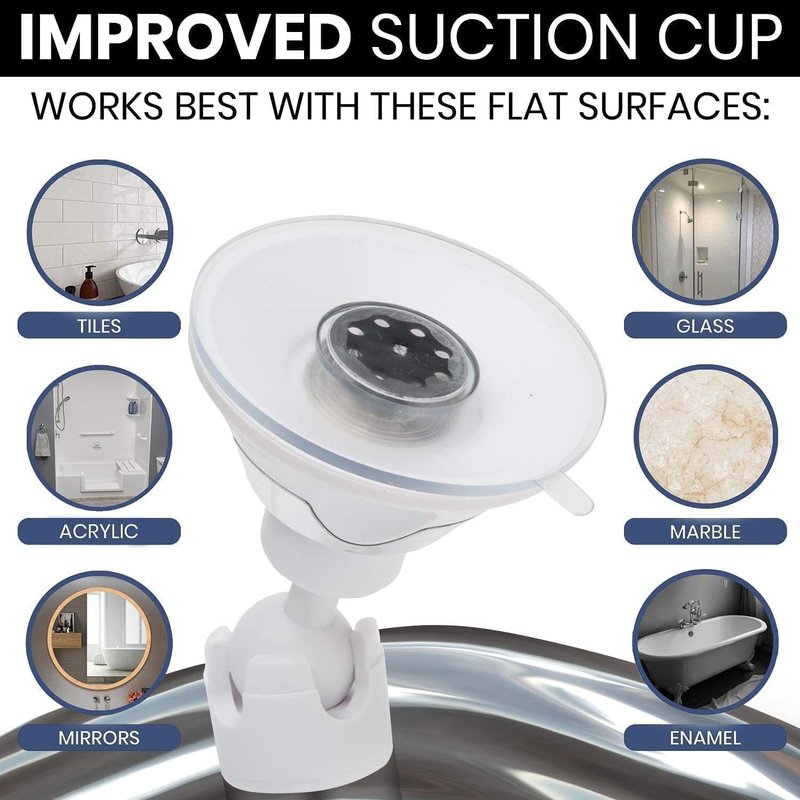 - #2 - UPGRADED SUCTION-CUP SO YOU CAN INSTALL IN SECONDS - Simply place the suction cup against any FLAT and NON-POROUS surface like a bathroom mirror or smooth granite countertop to lock suction in place. Also compatible with other smooth and flat surfaces like enamel, marble, acrylic, glass, ceramic and porcelain.