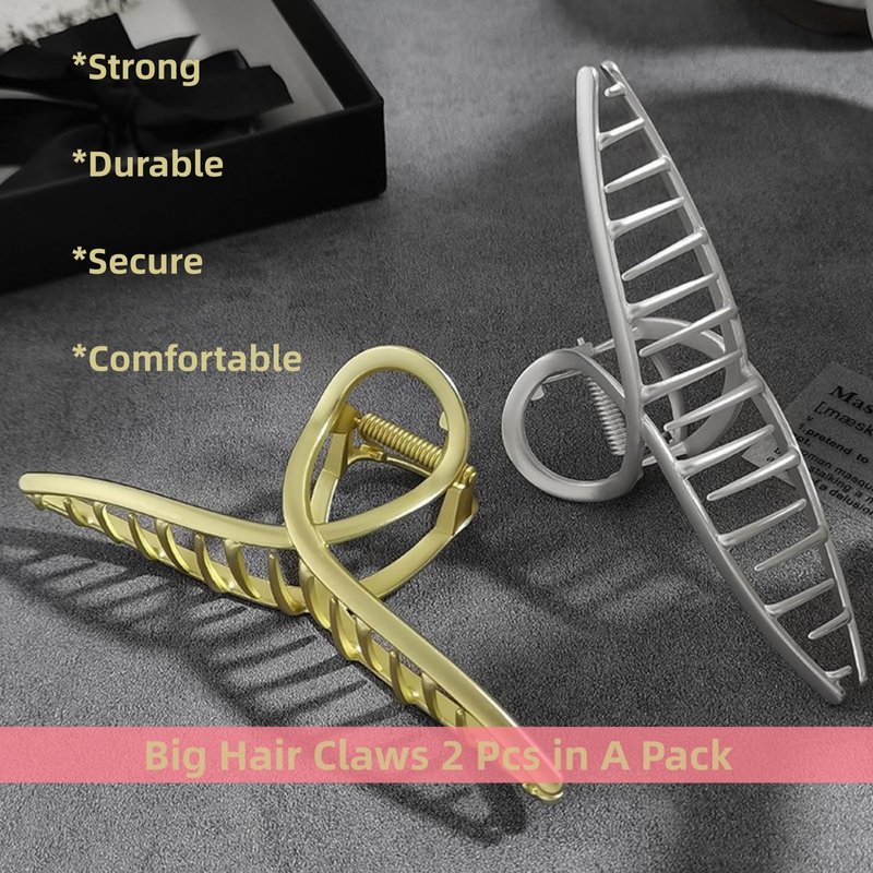 - 【Durable Material 】This large hair claw clips are made of high-quality metal alloy with a brushed metal effect and strong metal springs. Those large hair clamps clips are lightweight, simple which easy to match any outfit. the color is classic and simple line shape make you looks very good taste instead of usual hair clips. Well-polished end, no hurt to your hair.
