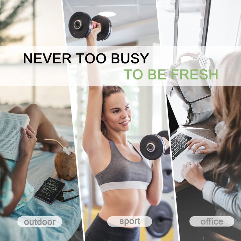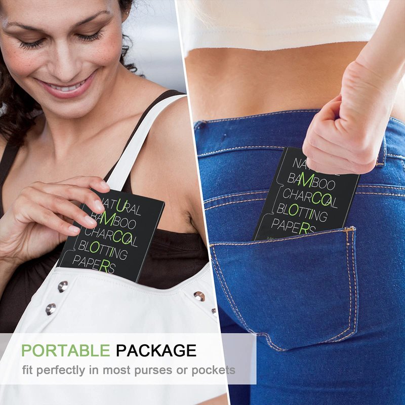 Mirucoo Natural Bamboo Charcoal Blotting Papers are made from 100% natural linen fibers with organic bamboo charcoal, contain no synthetic fragrance, no dyed color and no chemical additives. It soaks up excessive oils without over-drying your skin and removes shine from your face without smudging makeup or leaving behind powder. Non-irritation and safe for all skin types. Suitable for both men and women. They are perfect for daily use and easy to take with!