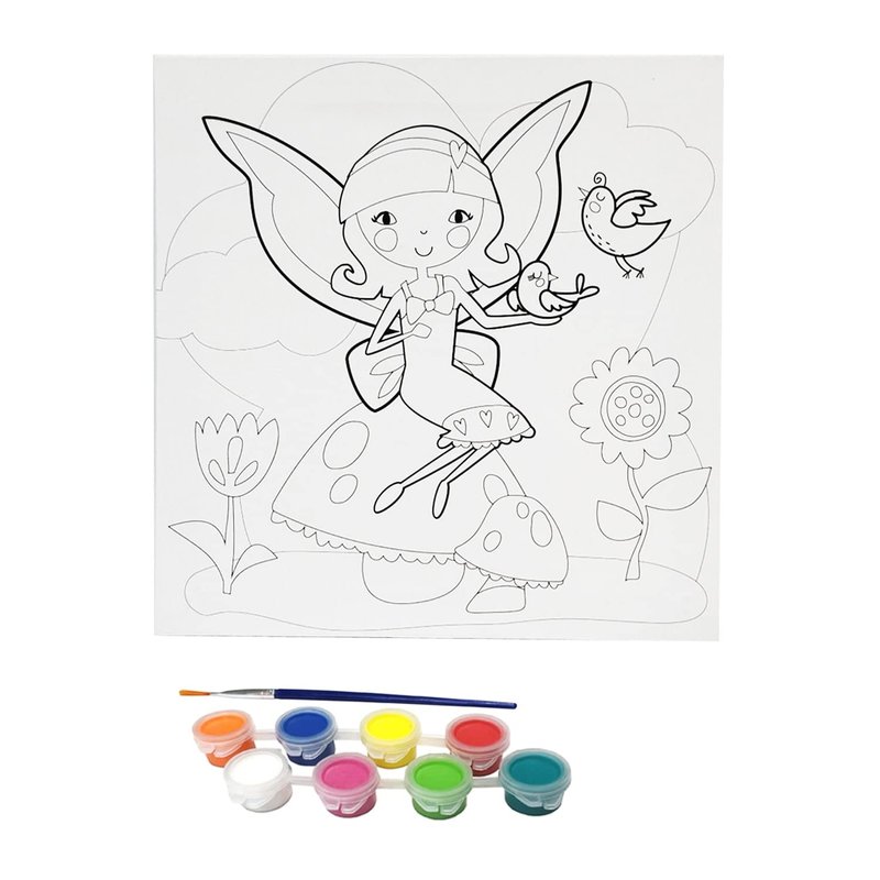 Misco Toys Canvas Paint Party Kits, 11 Piece Art kit Pre-Drawn Outline Canvas for Paint and Sip 8 Colors and Brush Included, Great Gift for Kids 4+ and Adults Too! (Fairy)