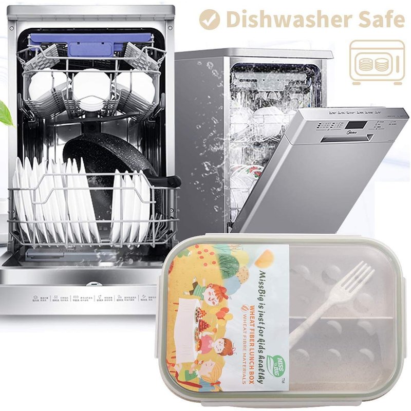 - ♨♨SAFETY KIDS LUNCH BOX: Environmentally Friendly. MISS BIG safety bento lunch box for kids cares very much about using healthy products for children. The main raw material is natural wheat fiber,making it healthy for our planet and for our children. No BPAs and no chemical dyes. The material of this kids bento box also resists staining making clean up a breeze!It's your ideal daily bento lunch box!It's also a reusable bento box.