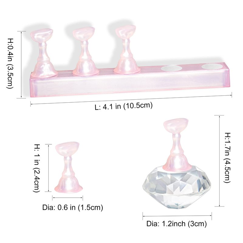 - Comfort Size and Weight : The unique nail holder size is LxWxH: 0.55x0.55x1 inch. It would not be too small to hold on fingers, and the height is OK for you to put into any UV lamp. The nail touching surface is smooth and arched to matching nail shape perfectly. The holder and stand are very light, only about 15g, you would not feel tired after long time holding on.