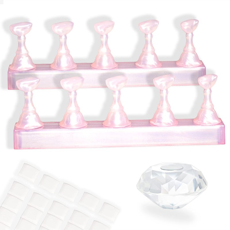 MISSELF Nail Stand for Painting Nails, Nail Stands for Press Ons with Putty, Acrylic Nail Art Stand Nail Holder for Fake Nails Practice Magnetic Crystal 2 Sets