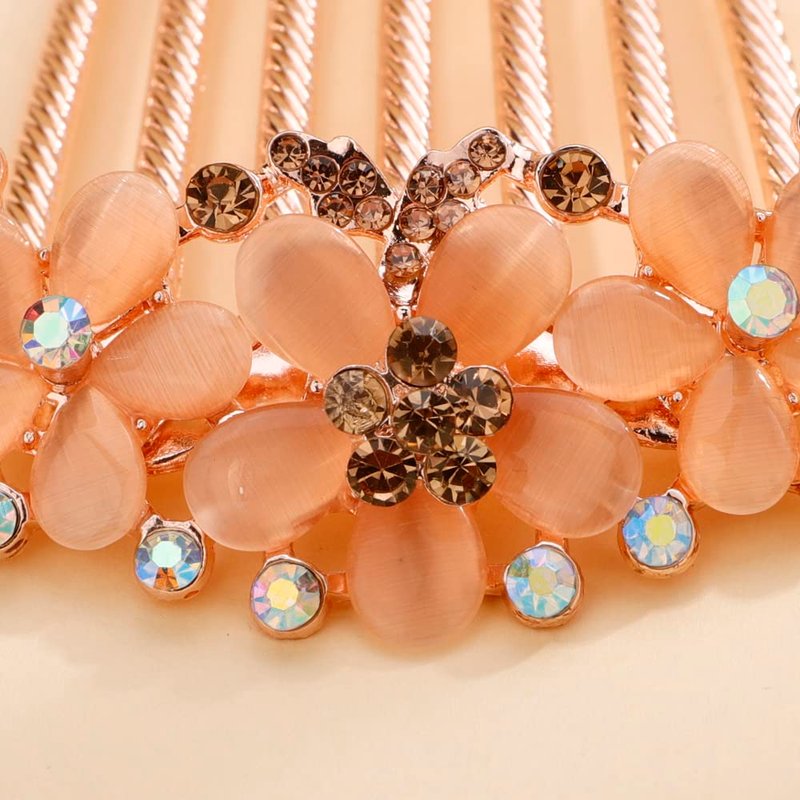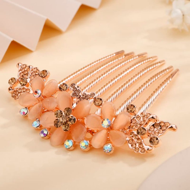 Missgrace Boho Luxury Glitter Sparkly Flower Blue Pink Crystal Rhinestones Hair Side Combs Hairpins Barrettes Bride Hair Clips Accessories for Women Girls (Champagne)