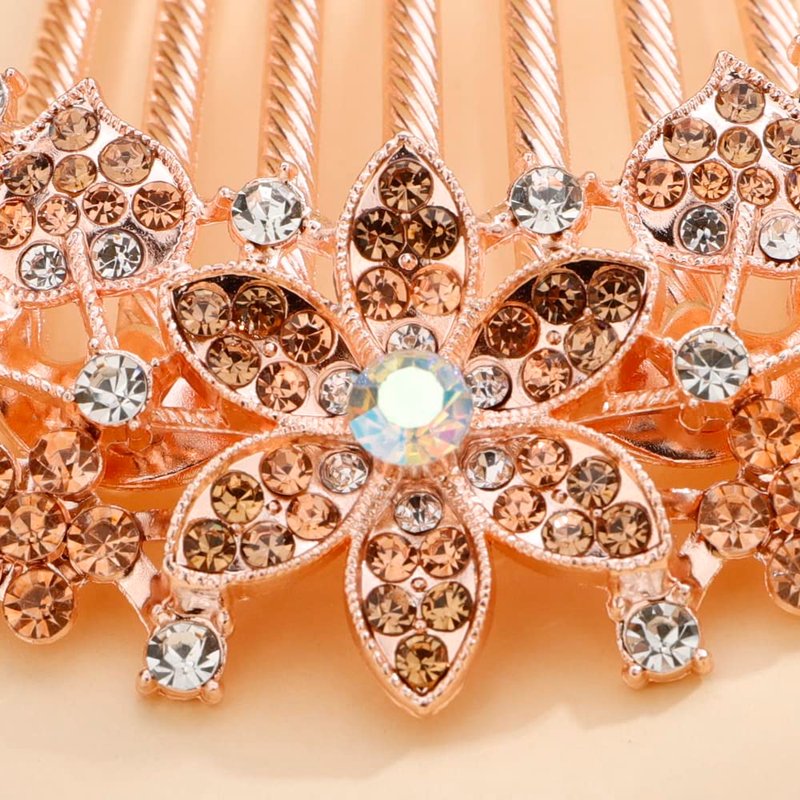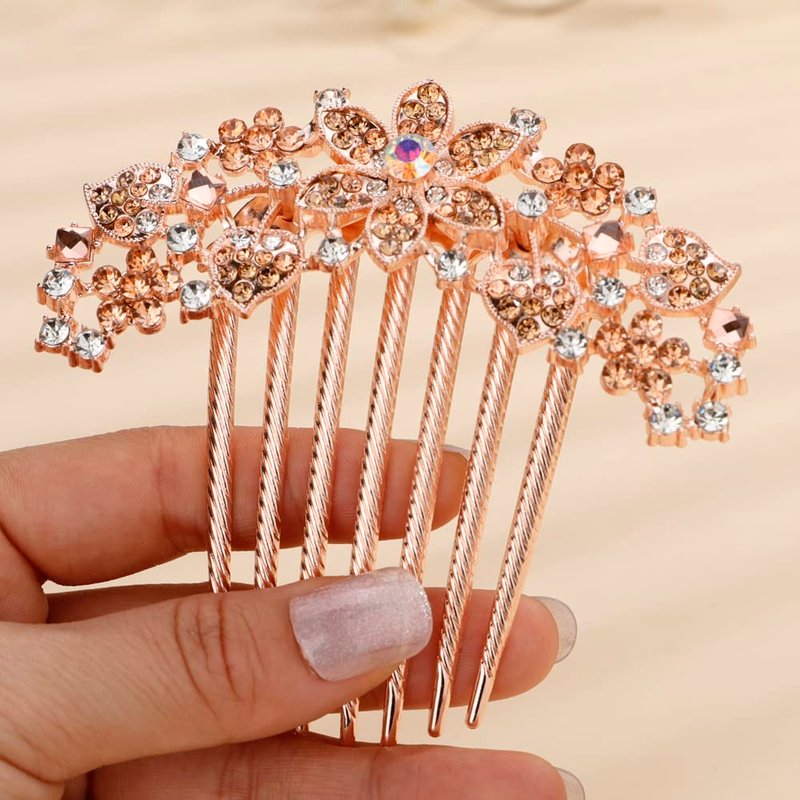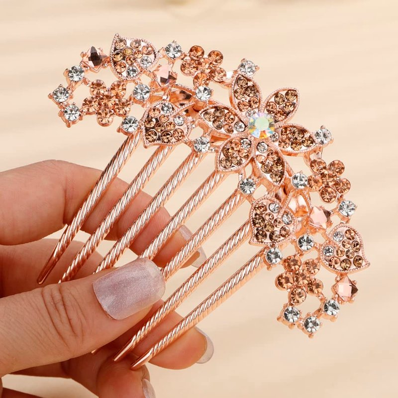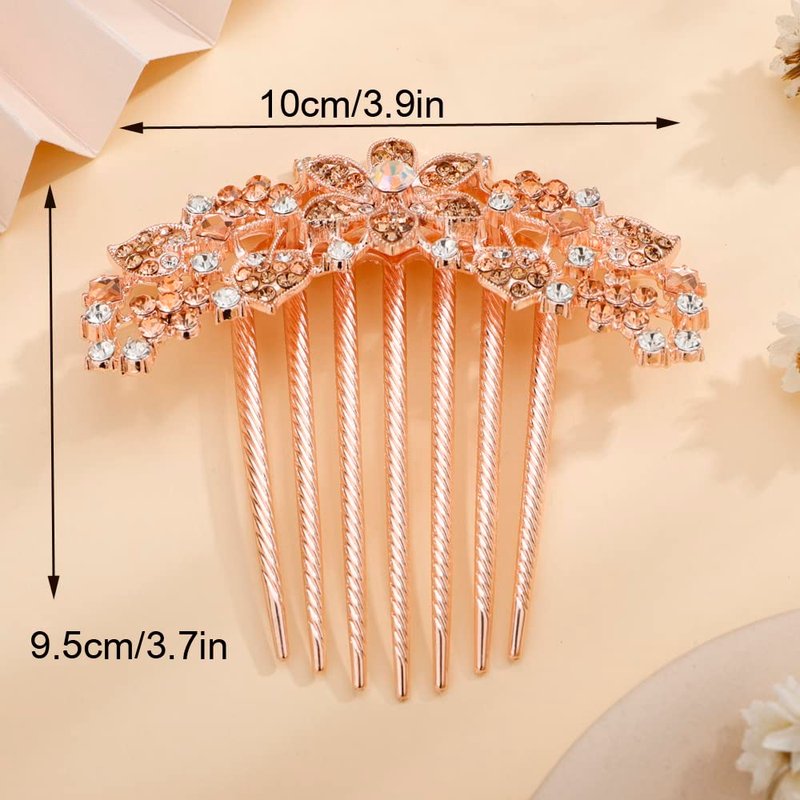 Missgrace Boho Shiny Flower Floral Hair Combs Blue Pink Purple Bridal Wedding Hair Crystal Rhinestones Women Hair Side Combs Hair Accessories for Women (Champagne)