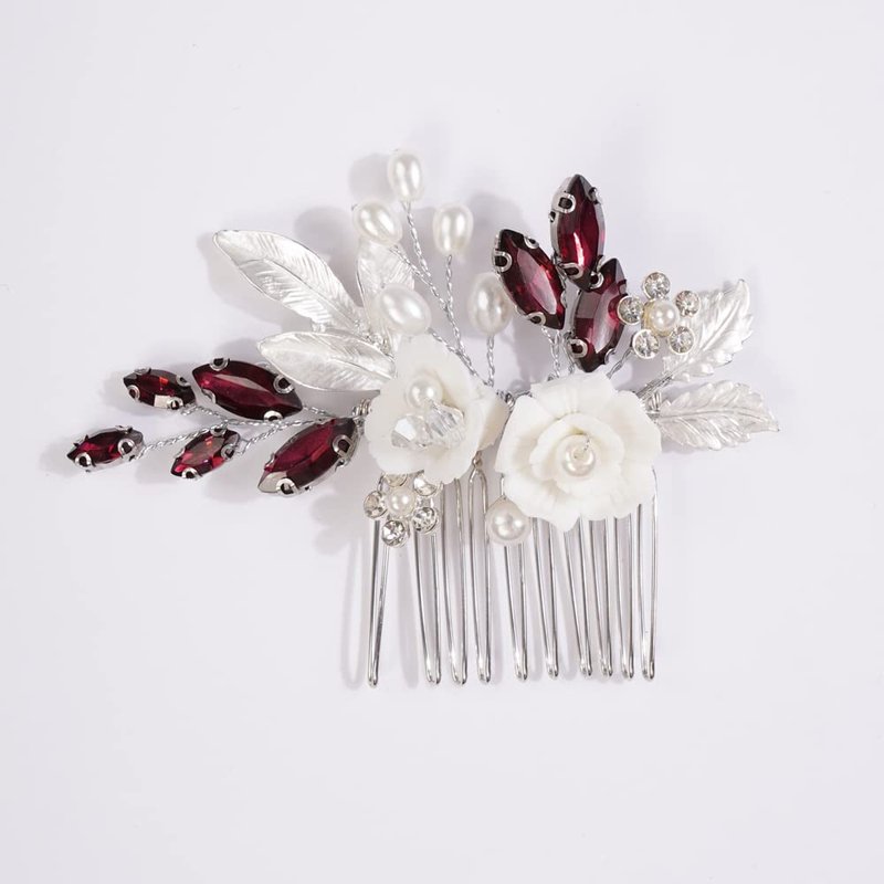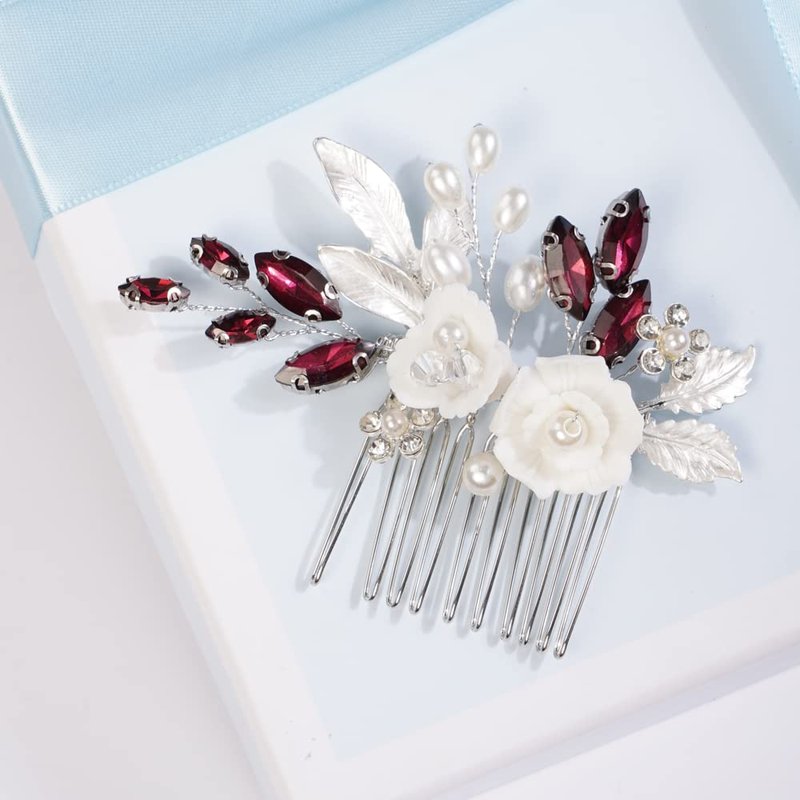 - Wedding Crystal Rhinestones hair comb ,Color :Silver Wine Red