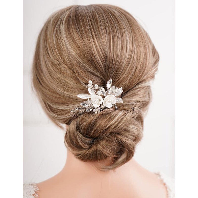 Missgrace Bride Wedding Crystal Pearl Leaf Rhinestones Hair Comb Silver Gold Bridal Hair Pieces Rhinestone Bridal Hair Clip Flower Hair Side Combs Wedding Hair Accessories for Brides Women (Silver)