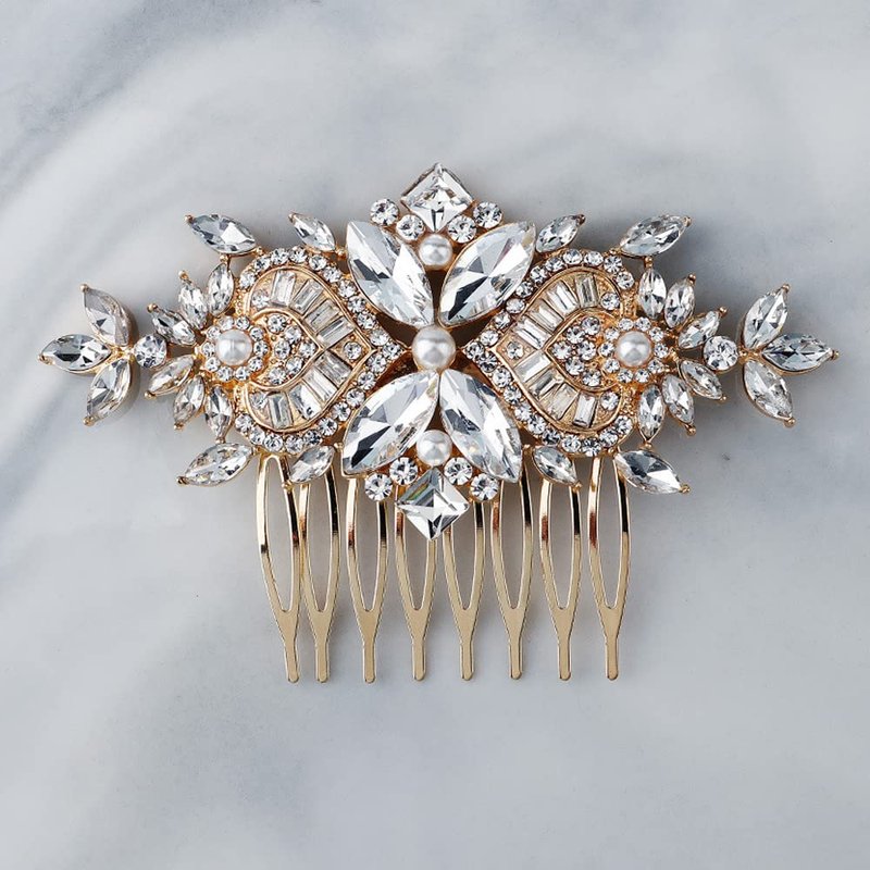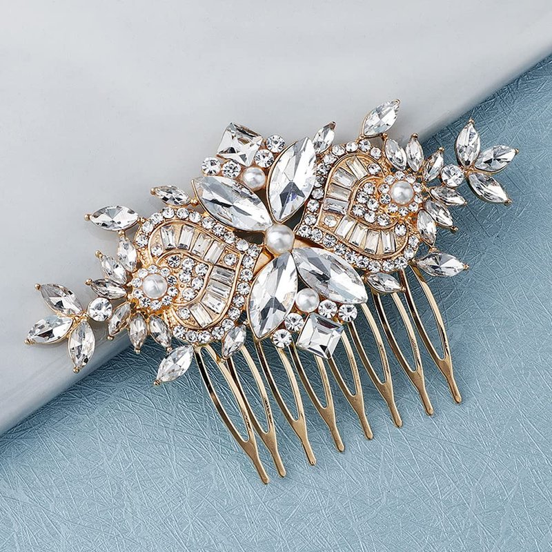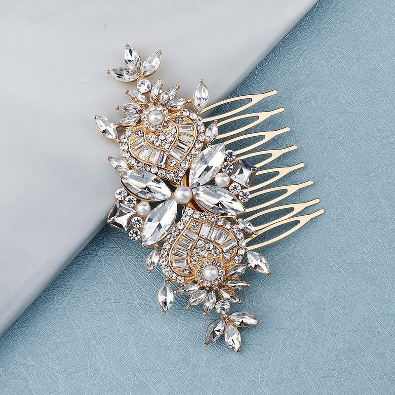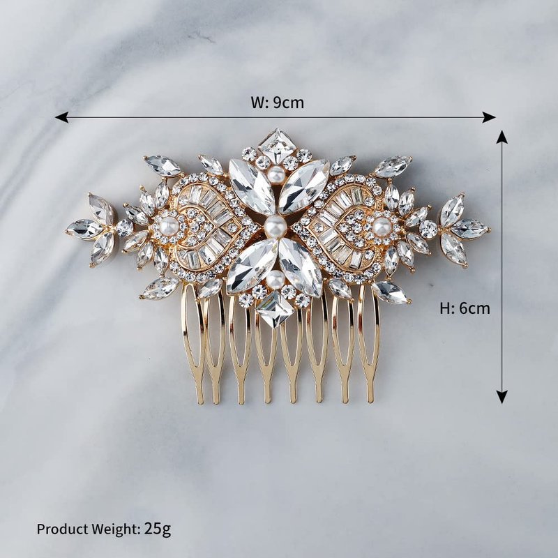Missgrace Bride Wedding Prom Side Hair Comb Crystal Rhinestones Flower Hair Comb Clips Bridal Hair Accessories Hair Piece for Women and Girls (Gold)