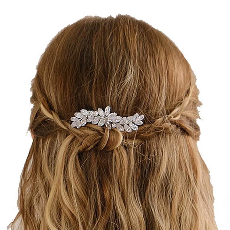 Missgrace Bride Wedding Prom Sparkling Simple Zircon Side Hair Comb Crystal Rhinestones Flower Hair Comb Clips Bridal Hair Accessories Hair Piece for Women and Girls