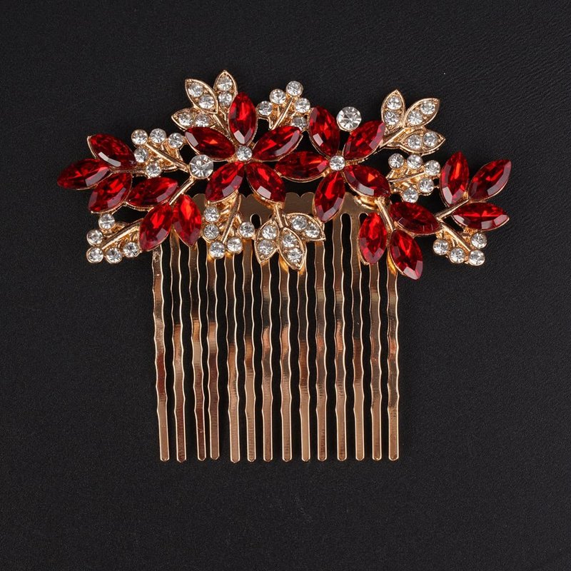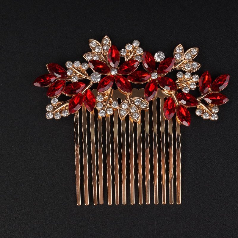 - Wedding Rhinestones hair comb ,Color :Gold Red