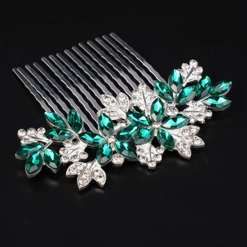 - Wedding Rhinestones hair comb ,Color :Silver Green