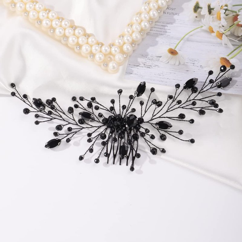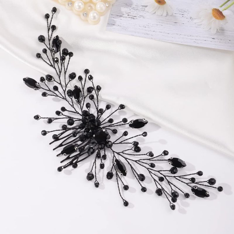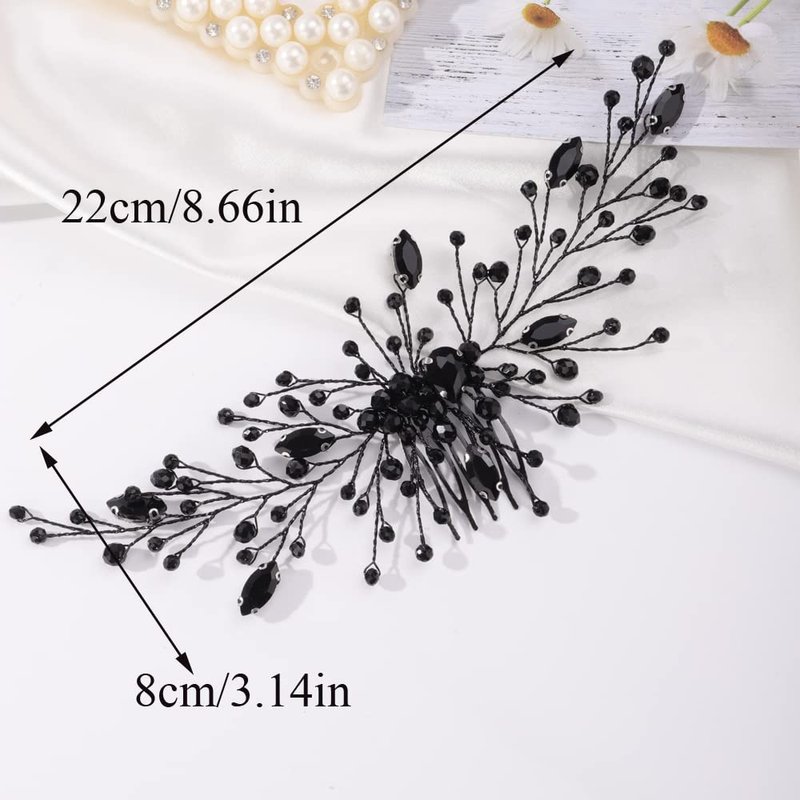 Missgrace Women Handmade Gothic Black Full Rhinestones Side Hair Comb Prom Party Special Occasion Punk Headpiece Black Women Rhinestones Hair Accessories for Women Gilrs (Black 2)