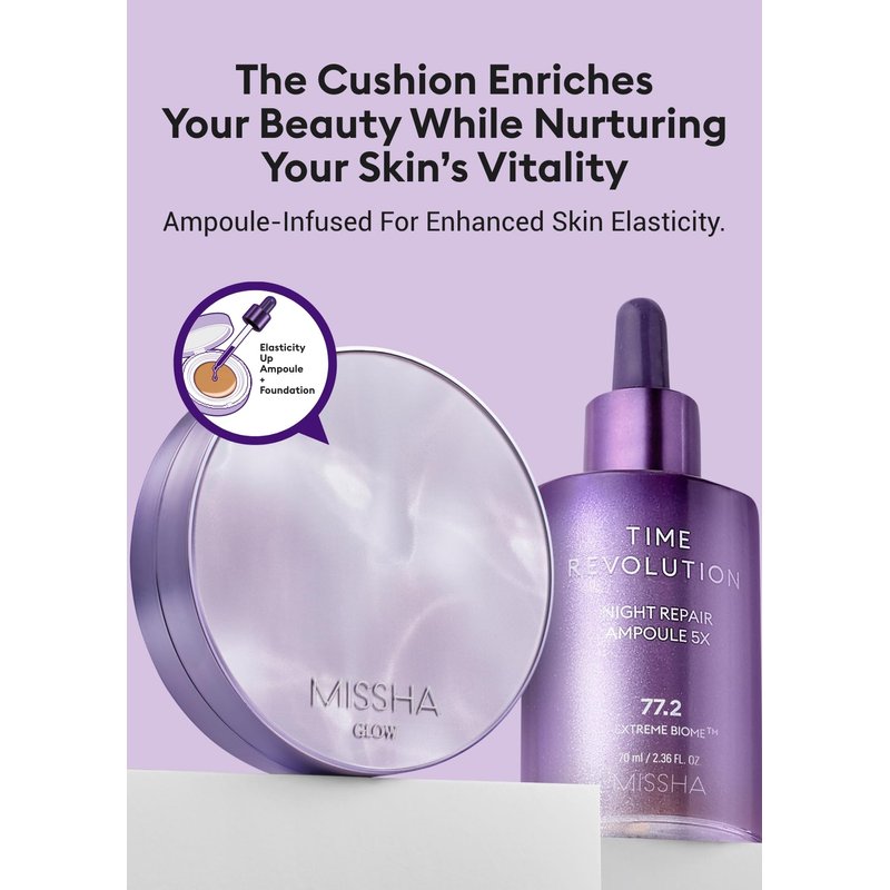 MISSHA Serum Cushion Glow Layering Fit Cushion Foundation No.21 Vanilla Light Beige for Bright Skin, Korean Foundation Makeup, Rich-Texture, Full-Coverage, 24-Hr Hydrating, Triple Glow System