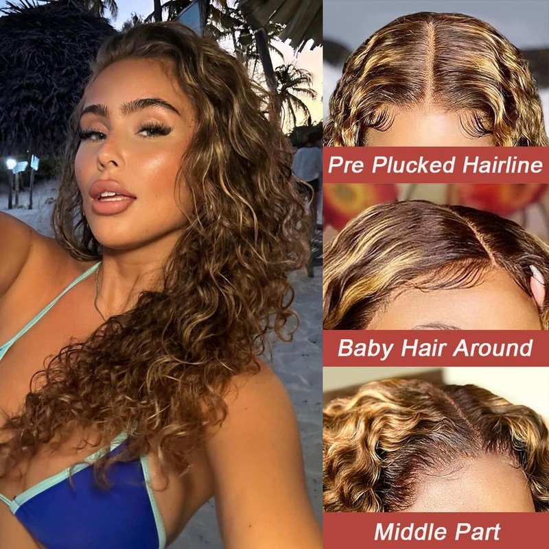 MISSJAY 32 Inch Ombre Highlight 13x4 HD Transparent Lace Front Wigs Human Hair Honey Blonde 4/27 Deep Wave Human Hair Wigs for Black Women Curly Wigs Pre Plucked with Baby Hair 180 Density