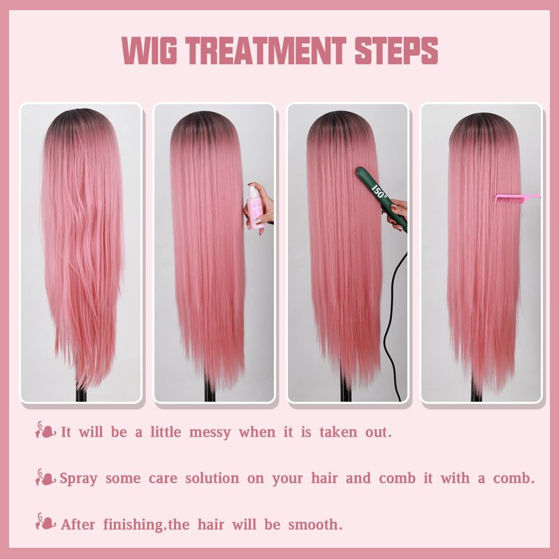 - Superior Synthetic Wig: Straight ombre pink wig dark roots are mixed with several kinds of imported premium synthetic fiber, which enable the ombre light pink pastel straight wig long term use, looking natural and touching soft, overall fluffy feeling and less tangling. Heat resistant fiber high temperature up to 160 degrees centigrade (320 Degrees Fahrenheit).All Straight pink wig long are hand woven, shed slightly especially when you wear for the first time, which is normal.
