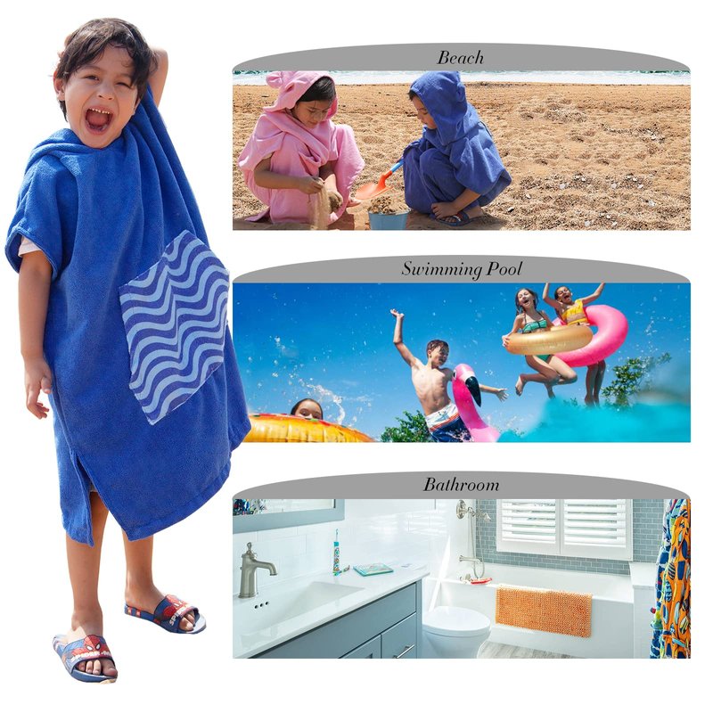 - [SOFT AND COMFORTABLE] This beach towelling robe for kids is made from soft Microfiber. The material is very soft and suitable for the sensitive skin of young children. This girls and boys hooded poncho towel for kids is absorbent and will dry your child easily. This hooded towelling robe is a must have summer accessory