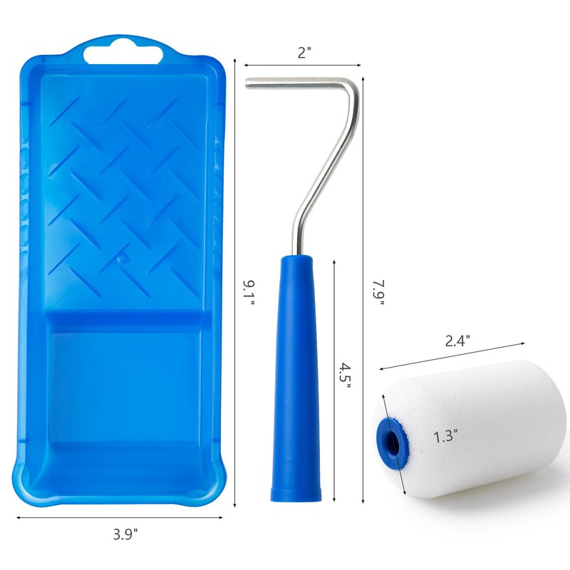 - Paint Roller kit includes 2 inch high density foam paint roller covers*6, 2 inch plastic paint tray*1, small paint roller frame*1
