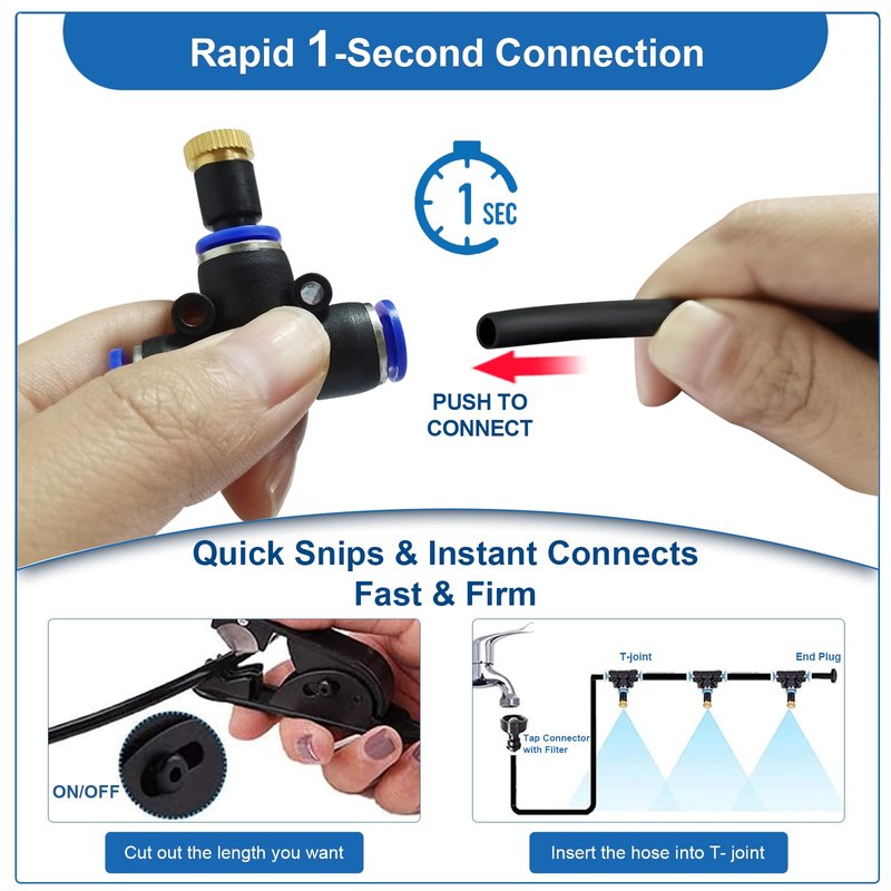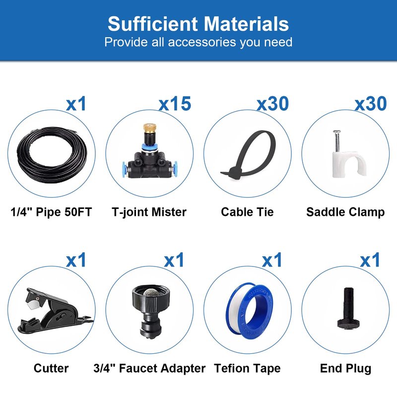 - 【Easy to Install】Provide sufficient accessories and user manual. Only takes you 10 minutes to finish the patio misters and then you can enjoy the cool air outdoors with your family, friends.