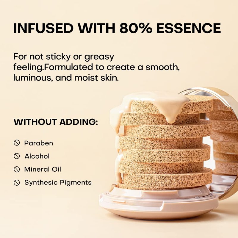 - LESS SMUDGING AND FADING: Breathable, comfy texture is never stiff, thick, or cakey.Our sebum control cushion foundaton is designed to create elaborate makeup without smudging.It helps control excess oil,improves moisture level,keeps your complexion maintain a comfortable feeling as if breathing.Triple long-lasting technology help base makeup stay put for up to 24 hours.Sweat-,heat- and transfer-resistant.